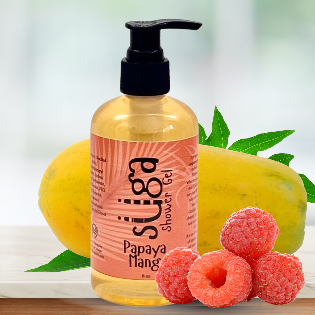 PAPAYA MANGO SHOWER GEL: Notes of orange, grape, pineapple, apricot, tonka bean