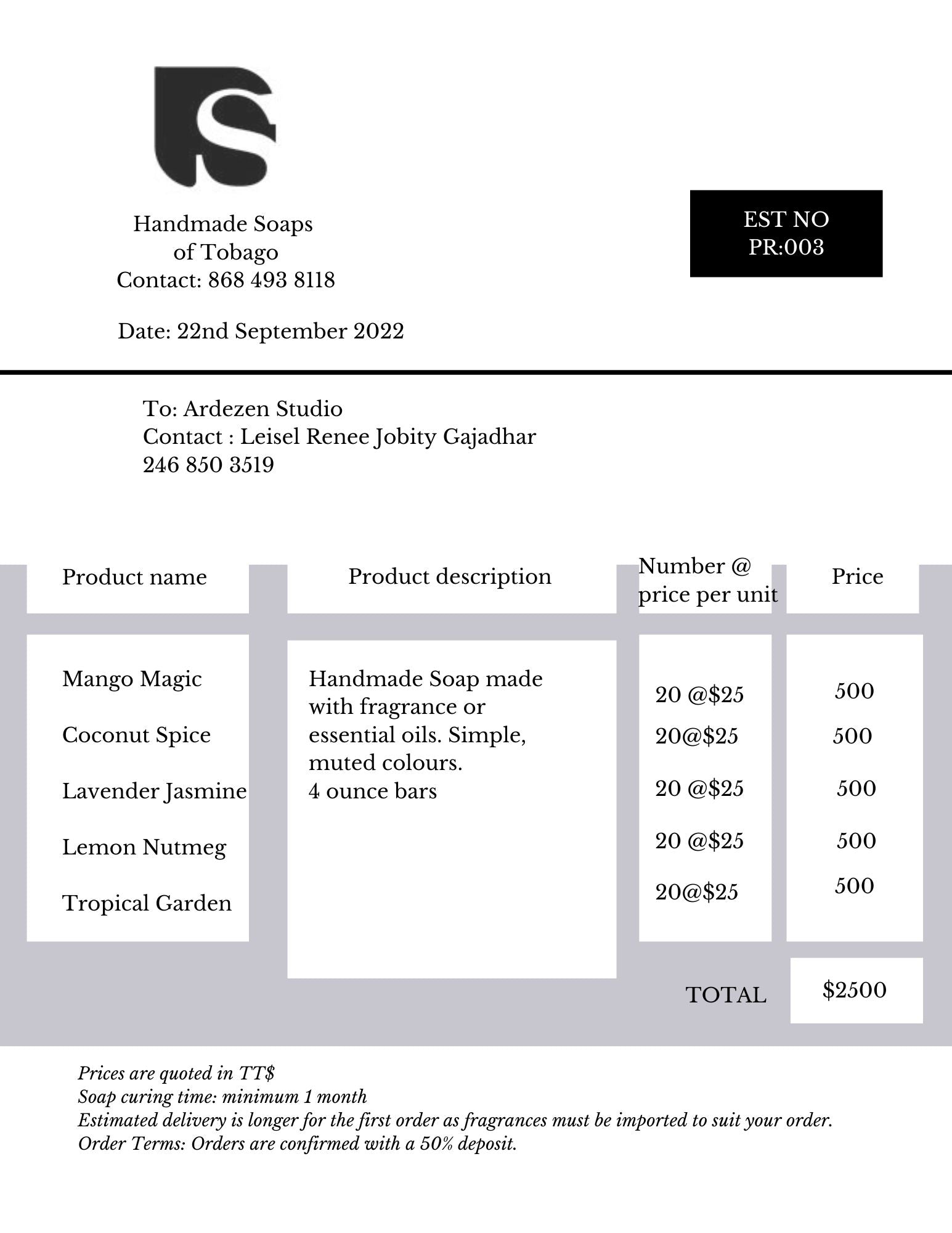 Personalised Invoice: Ardezen Studio